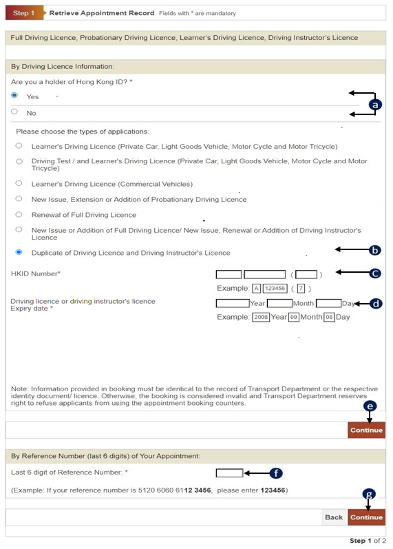 If you have Appointment Reference Number, you can use step “f” and “g”