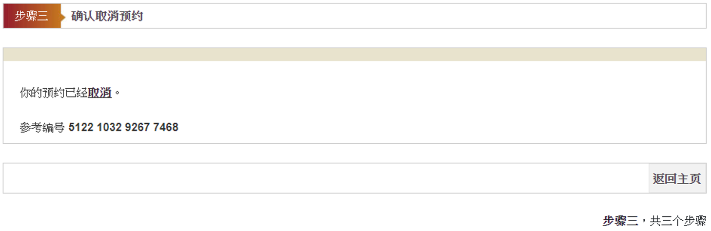 按「取消预约」后,按照画面指示确定取消已完成的预约。
