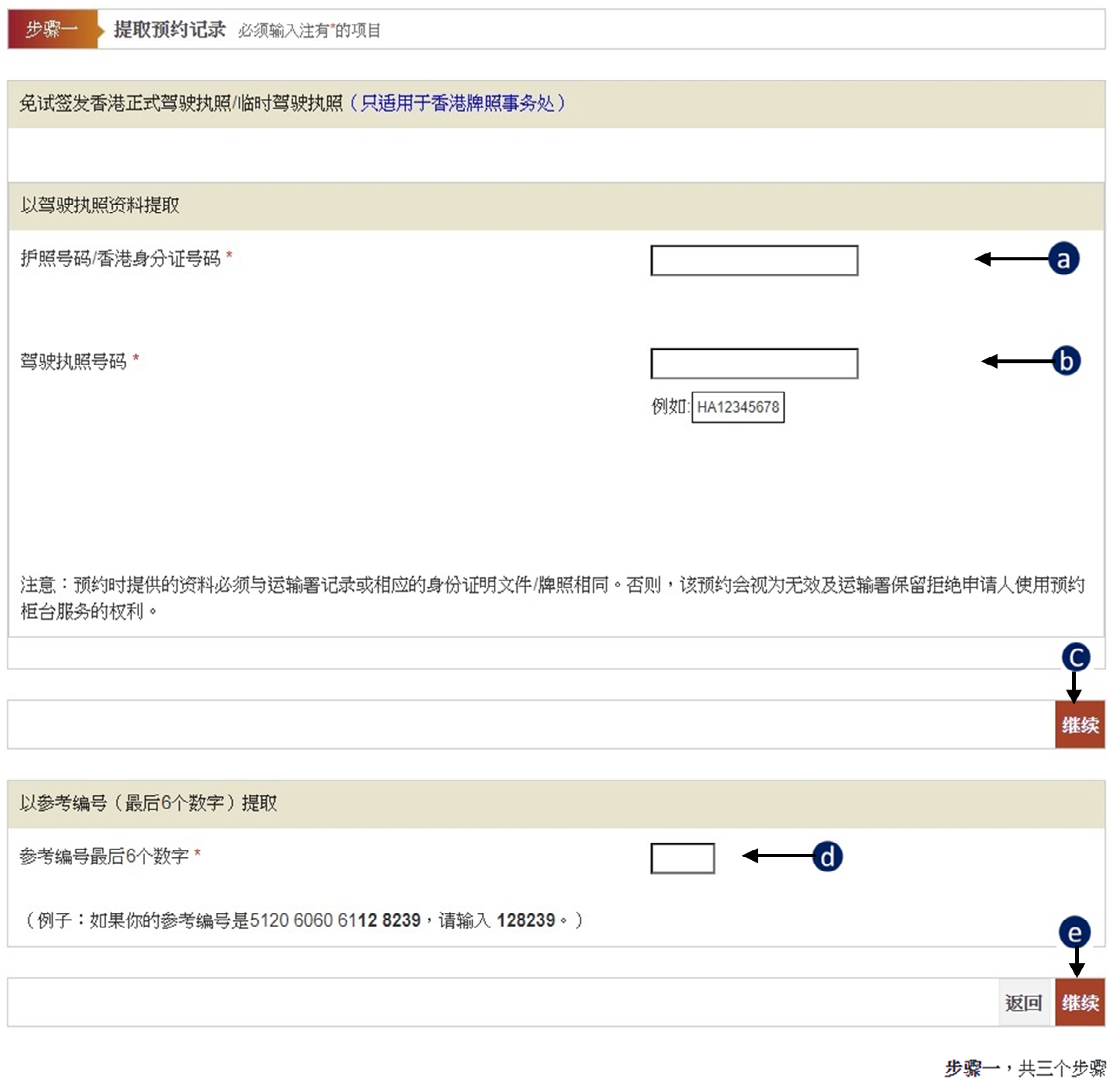 如果你有预约参考编号, 你可以按步骤 “d” 和 “e” 提取