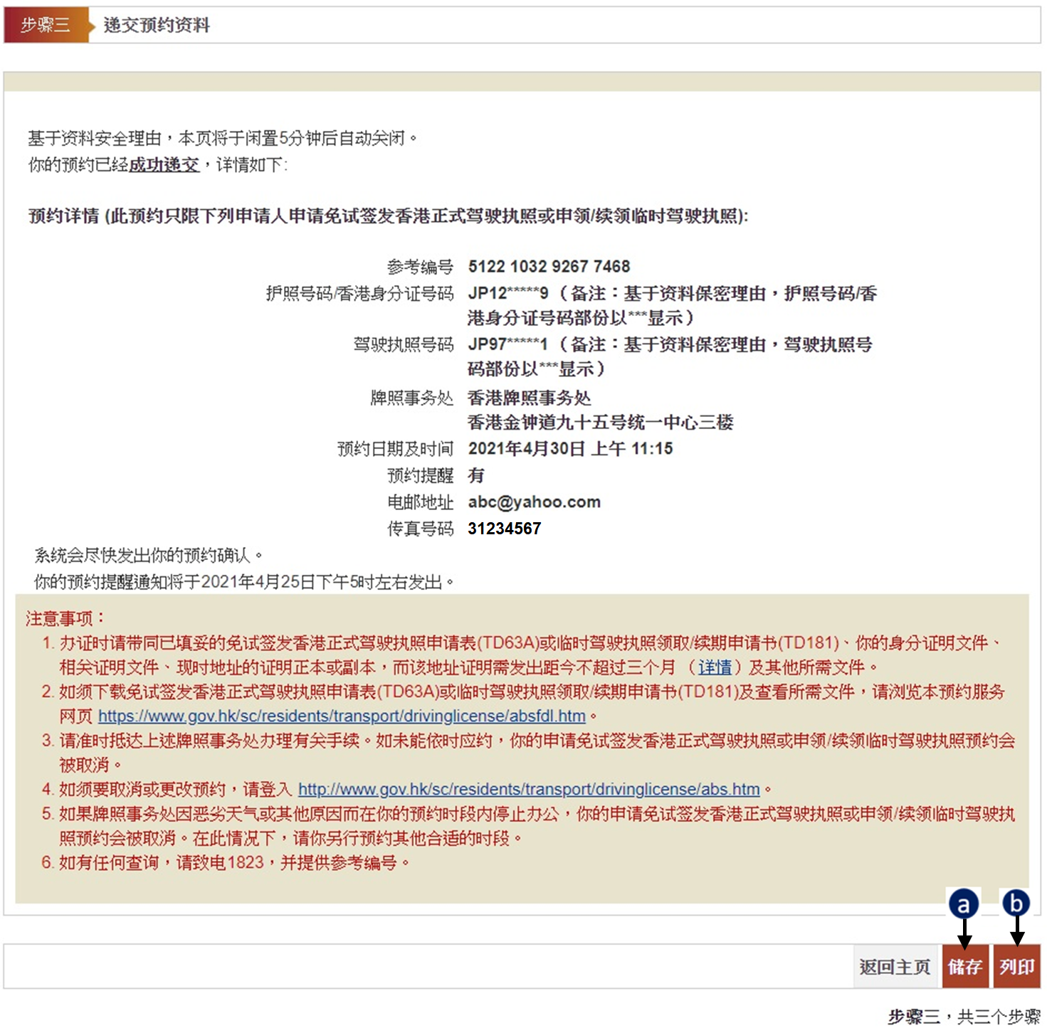 步骤三(2) – 要求收取预约确认