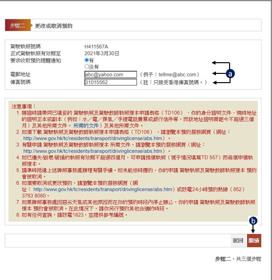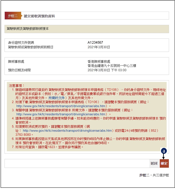 如需更改牌照事務處或預約日期及時間資料,按「更改」. 然後前往 步驟三.