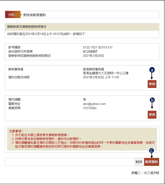 步驟二:更改或取消預約