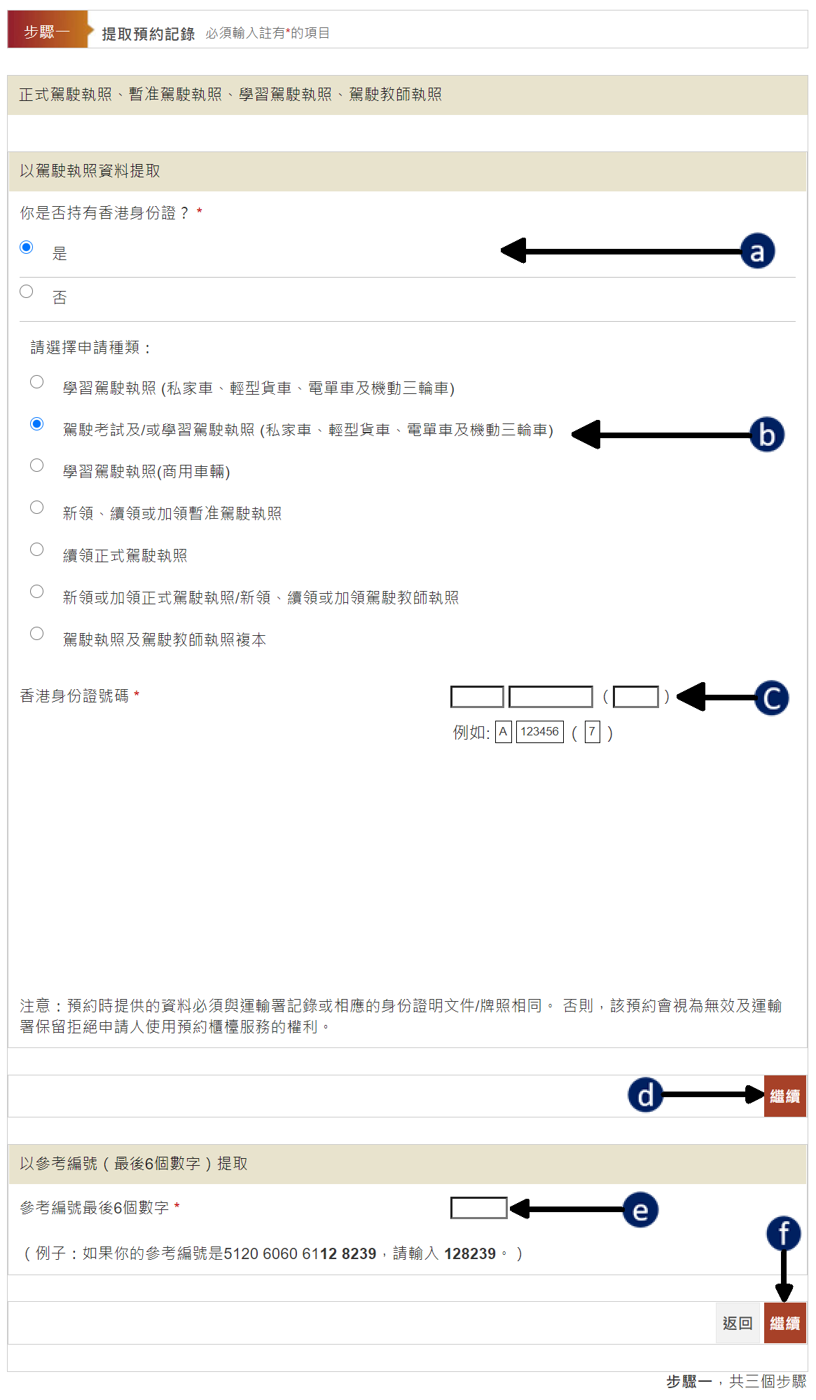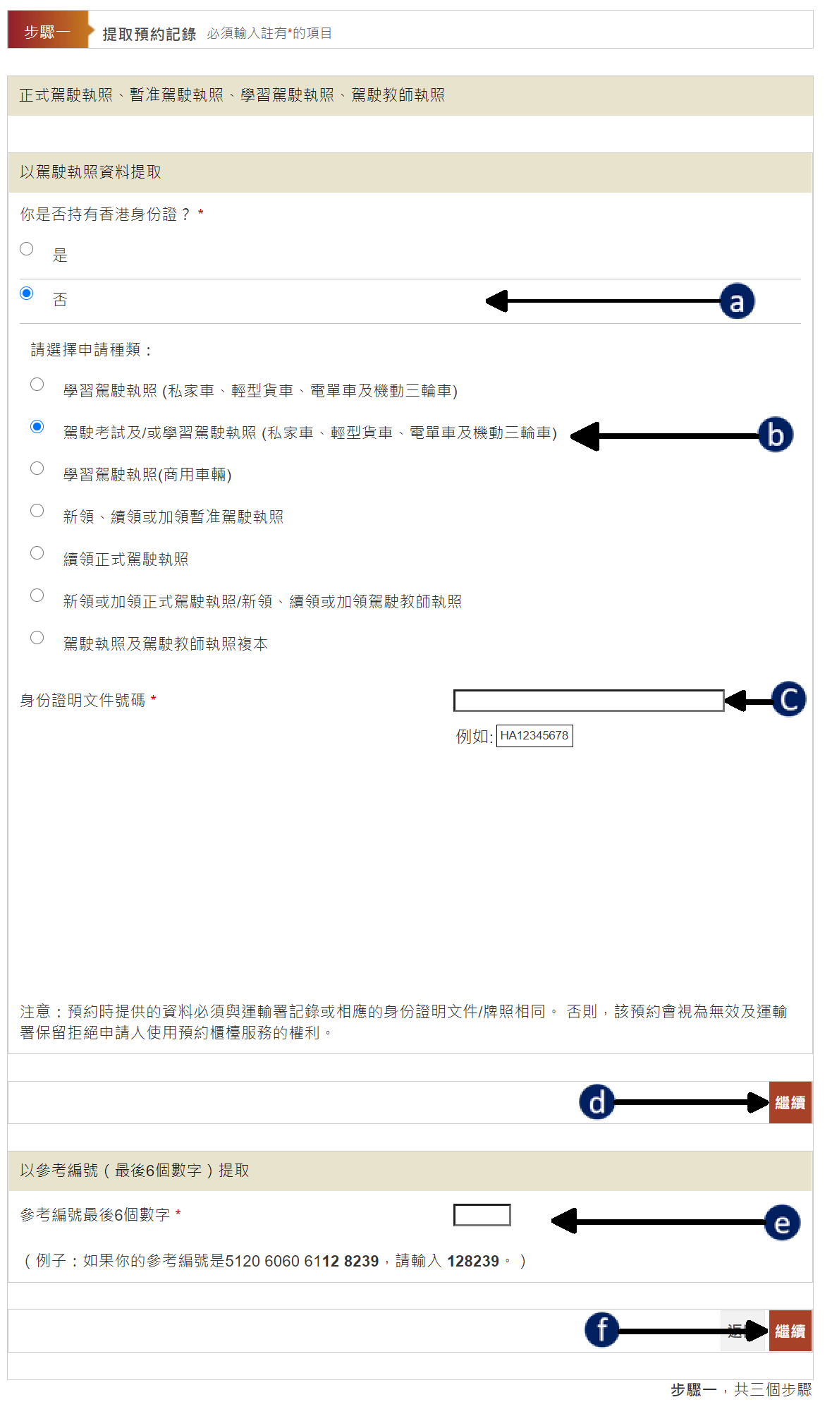 如果你有預約參考編號, 你可以步驟 “e” 和 “f” 提取