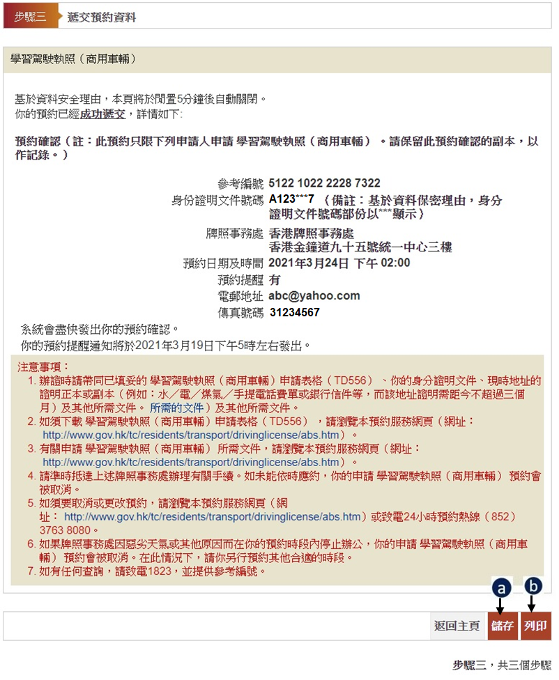 步驟三(2) – 要求收取預約確認