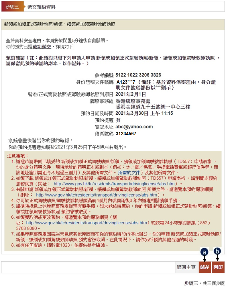 預約運輸署牌照事務處服務網上示範